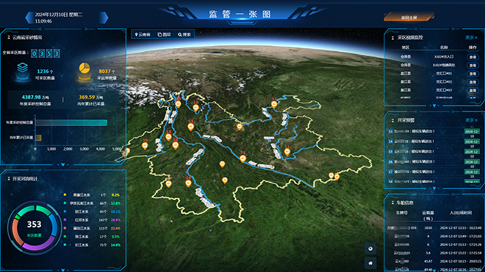 截至验收节点,项目已累计开具采运单11025单、过驳转运单15单,完成461项采砂许可管理事项;实现曲靖、昆明、保山等8个州市、29个采区的68套视频监控设备,11个采区的11套计量设备,以及4个采区的6套定位设备与省级系统的数据互联互通,数据传输稳定、监管覆盖全面。